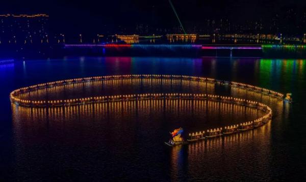 2025年9月14日晚,在第三屆張家界旅游發(fā)展大會(huì)前夕,慈利縣放馬洲公園的澧水河畔上演了一場(chǎng)“活態(tài)非遺+科技光影”的盛宴。那條長(zhǎng)達(dá)500米、由66根竹筏串聯(lián)而成的板板龍燈,結(jié)合燈光秀、無(wú)人機(jī)表演和水幕等現(xiàn)代科技元素,打造出“水陸空”三維沉浸式夜游體驗(yàn)。